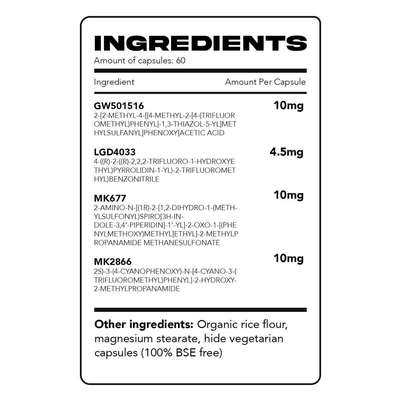 Endurance & Stamina: GW-501516 delivers powerful improvements in endurance, while the added benefits of MK-2866 and MK-677 help you push through longer, tougher workouts.